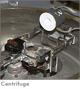 The centrifuge is sometimes referred to as the casting machine. It is used to transfer the molten metal from the crucible to the interior of the flask filling the empty space once occupied by the wax model. For gold casting the centrifuge is comprised of a horizontal steel arm that is balanced on a spring-loaded base. The arm is wound several times and held in place by the machines stop device. When the metal has achieved the ideal temperature the stop is released and the steel arm is allowed to travel free in a circular motion at the equivalent of a "g" force.